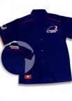 Kemeja dengan kombinasi stripe di bahu dan belakang serta di balik kerah memberi kesan casual